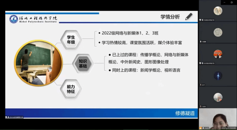 为了能进一步提高公司教师综合素质,完善教学方式,提升教学水平,12月21日至12月23日,db旗舰网络与新媒体系、数字媒体艺术系组织开展为期三天的线上教师说课比赛,由网络与新媒体系主任孙妍主持。