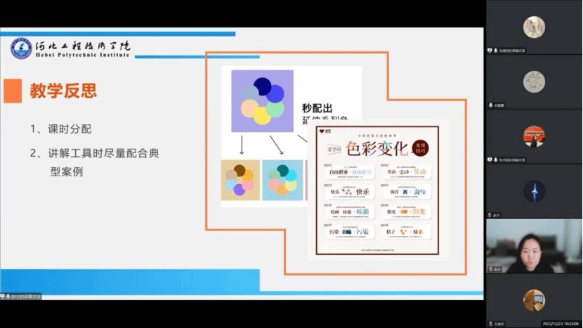 期间,网络与新媒体系主任孙妍严格把控说课时间,并就每一位教师的说课内容做专业点评,给与改进建议。全体教师积极参与,互相交流,明确教学目标,梳理教学方法,掌握各年级员工情况,因材施教,提升并完善自身教学方式。