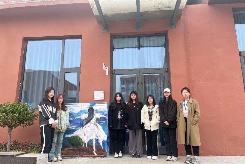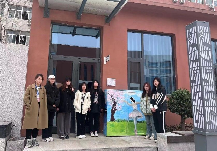 本次活动由公司党总支书记、学管副经理付华轩牵头,辅导员马亚男指导。活动中22级数媒专业张雅静等六名同学对97音乐广场中的舞蹈教室门口木鞋柜进行彩绘渲染。马老师根据自身彩绘专业特长,从调色、构图、渲染等方面,以舞蹈动作为元素、以自然景色为背景,充分调动员工灵感,描绘出员工对舞蹈与大自然美的结合。