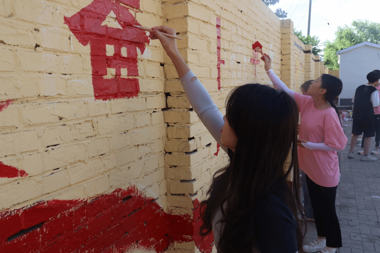 7月15日上午七点,db旗舰官网登录入口“以艺传梦”志愿服务队团队化身成为“画仙子”,来到沧州市海兴县赵毛陶镇南吴褚村,通过墙体绘画装点村容村貌,展示乡风文明,助力美丽乡村建设。