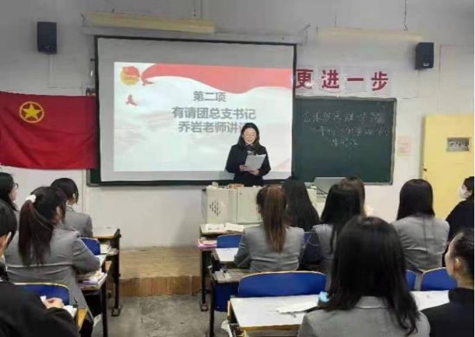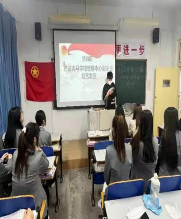 开班仪式开始之前,入党积极分子们身着校服,佩戴团徽,排队有序签到进场。为响应疫情防控,每位同学都佩戴口罩。首先全体成员用饱满积极的态度来唱团歌,表达对共青团的尊重,然后由团总支乔岩老师发表讲话,乔岩老师指出了入党积极分子的不足之处和需要注意的地方,同时还指出了今后如何去改进并完善自我。再然后由张小如主任和赵艺副主任轮流发言,讲述了作为一名入党积极分子应该做的事情,并教导我们要严肃认真的对待此次培训,积极努力的学习此次培训的内容知识,更可能的去了解党史和党的基本理论知识,同时还呼吁我们在以后的生活里做一名优秀的共产党员。此外张小如主任还为各位入党积极分子详细地讲解了此次培训每天的计划安排内容以及培训时长。最后由员工代表代晨鹏同学发言,他怀着激动的心情讲解了此时内心深处的感触,向党组织表明了自己和同学们的想法和观点。至此入党积极分子培训开班仪式圆满结束。