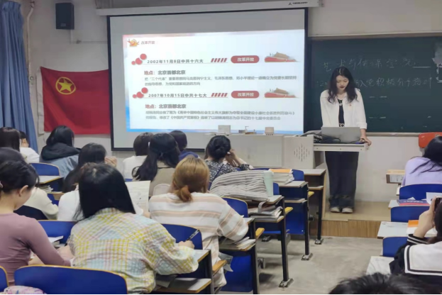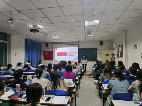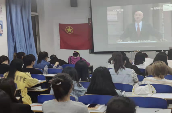 为了确保入党积极分子学习的高效性和持续性,青马负责人张小如主任选择了PPT讲解和视频播报的穿插相互进行。此次培训的开始由同学们起立庄严的歌唱了中国共青团团歌,然后张小如主任通过连接多媒体,为我们播放了党史纪录片-百家讲坛之党史一百讲,为我们播放了第三集:酝酿建党 各地响应和第四集:一大聚首 开天辟地。这两集纪录片为我们讲述了共产党建党的不易和中共一大召开的不易,通过讲故事讲事实的手段是我们深入其中,深刻的感受到了其中的艰难曲折过程。同学们认真且安静观看着影片的同时也随手在自己的笔记本上记录下了其中的重要部分,以供以后查看复习。