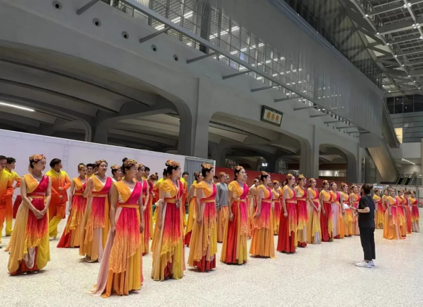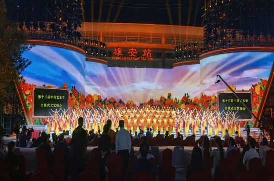 备受关注的“第十三届中国艺术节”闭幕式,于14日晚在河北雄安站广场举行了带妆全要素、全流程彩排,绚烂灯光点亮了广场的夜空。整个彩排完全按照闭幕式仪式各个环节进行,参加彩排人员全部带妆演出。据悉,这是首次带妆联排,现场气氛热烈。