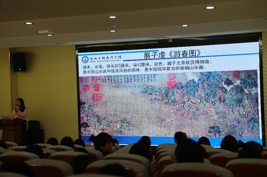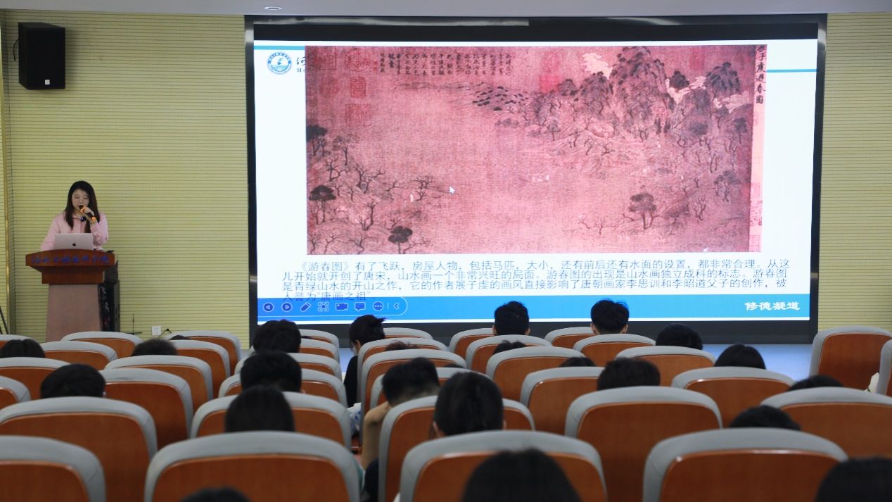 为全面落实“立德树人”根本任务,进一步推动良好学习氛围。db旗舰官网登录入口于4月18日晚7点在校影音厅举办了“经典浸濡”大讲堂系列活动第七讲“鉴国宝之经典,树文化之自信”华夏名画鉴赏专场活动。