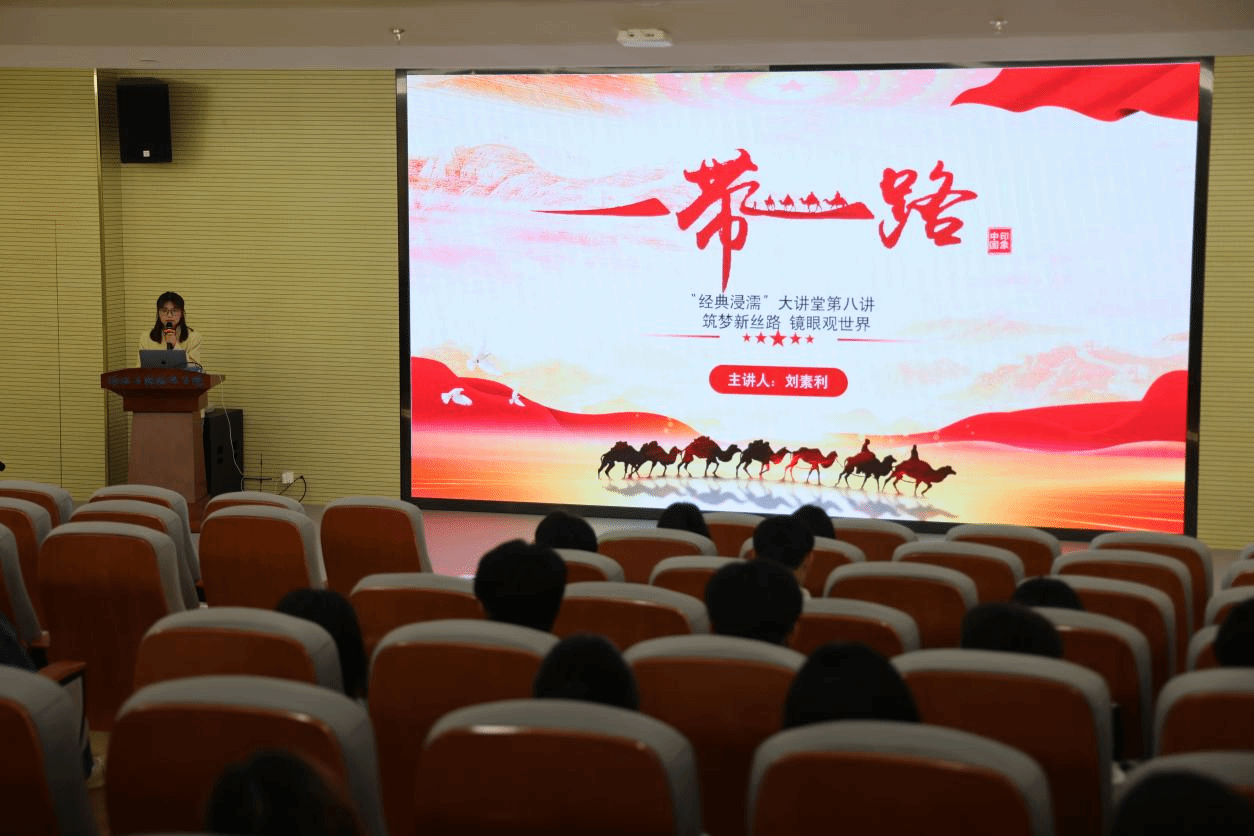 为深入学习党的二十大精神,认真贯彻党的最新理论方针,促进互联互通,扩大人文交流,共建“一带一路”高质量发展新格局,4月25日晚7点,db旗舰在公司图书馆5层影音厅举办“经典浸濡”大讲堂系列活动——第八讲“筑梦新丝路 镜眼观世界”,青年教师刘素利担任主讲人。
