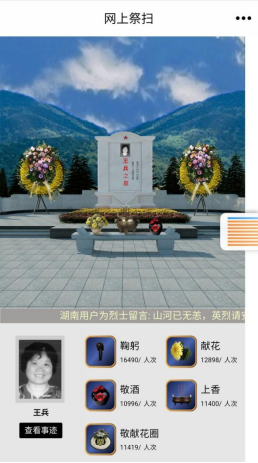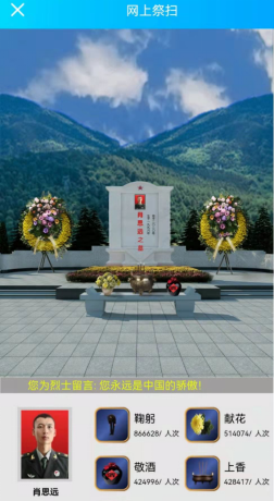 “天地英雄气,千秋尚凛然。”习近平总书记曾在多个场合缅怀英烈,讲述英雄事迹。他强调,我们要铭记一切为中华民族和中国人民作出贡献的英雄们,崇尚英雄,捍卫英雄,学习英雄,关爱英雄。清明节之际,让我们感怀烈士为革命理想甘洒热血写青春的赤子之心,继承民族命运和人民福祉扛于肩头的家国情怀,不忘初心,牢记使命,大家共同参与网上祭扫,歌颂英雄,缅怀先烈。