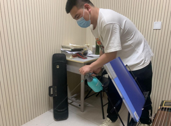 “疾风知劲草,板荡识诚臣”。在每个防疫斗争的第一线上,都有一面党旗飘扬指引方向,都有党员使命肩挑,奋勇担当。疫情防控,消毒是关键。党员先锋队的队员们口戴口罩,拿着喷雾器,挥动扫把拖布,扬洒消毒液的熟悉身影。那是党员先锋在积极做好防疫防控公益,在db旗舰行政楼和琴房进行消毒,用实际行动捍卫校园净土,为师生健康保驾保航!