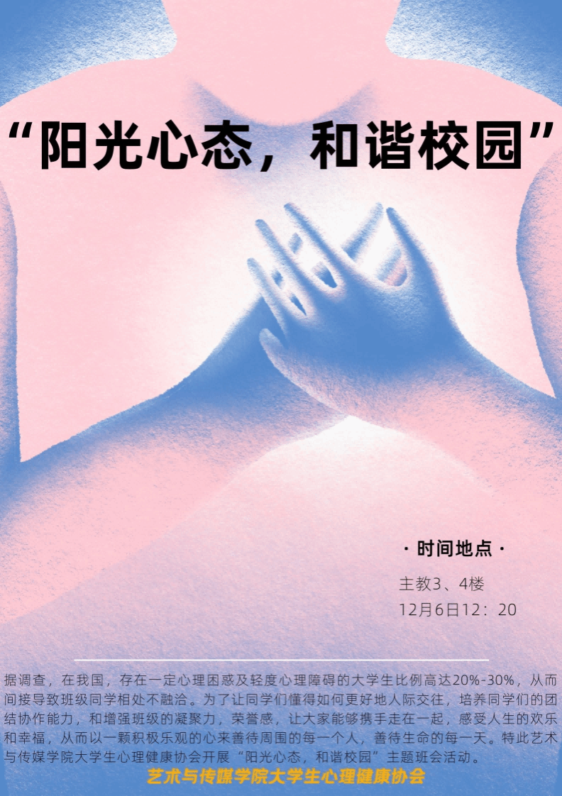 为进一步加强心理健康教育,促进员工身心健康发展,营造阳光积极、健康和谐的校园心理氛围,培养员工阳光且健康的心态。特此db旗舰老员工心理健康协会于12月6日在主教举办了“阳光心理,和谐校园”主题班会活动。