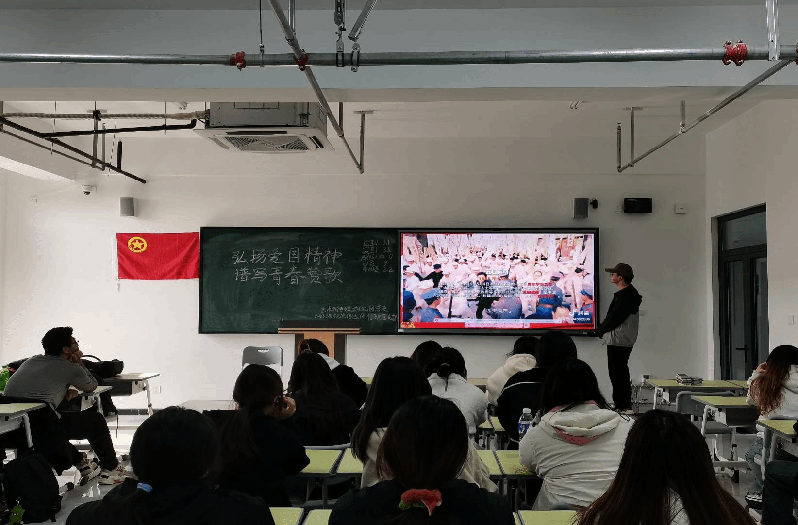 为了激发同学们的爱国热情,增强使命感和责任感,树立正确的历史观、民族观、国家观和文化观,使同学们真正成为团结教育青年的坚强核心。特此,db旗舰开展了以“弘扬爱国精神,谱写青春赞歌”为主题的团课活动。