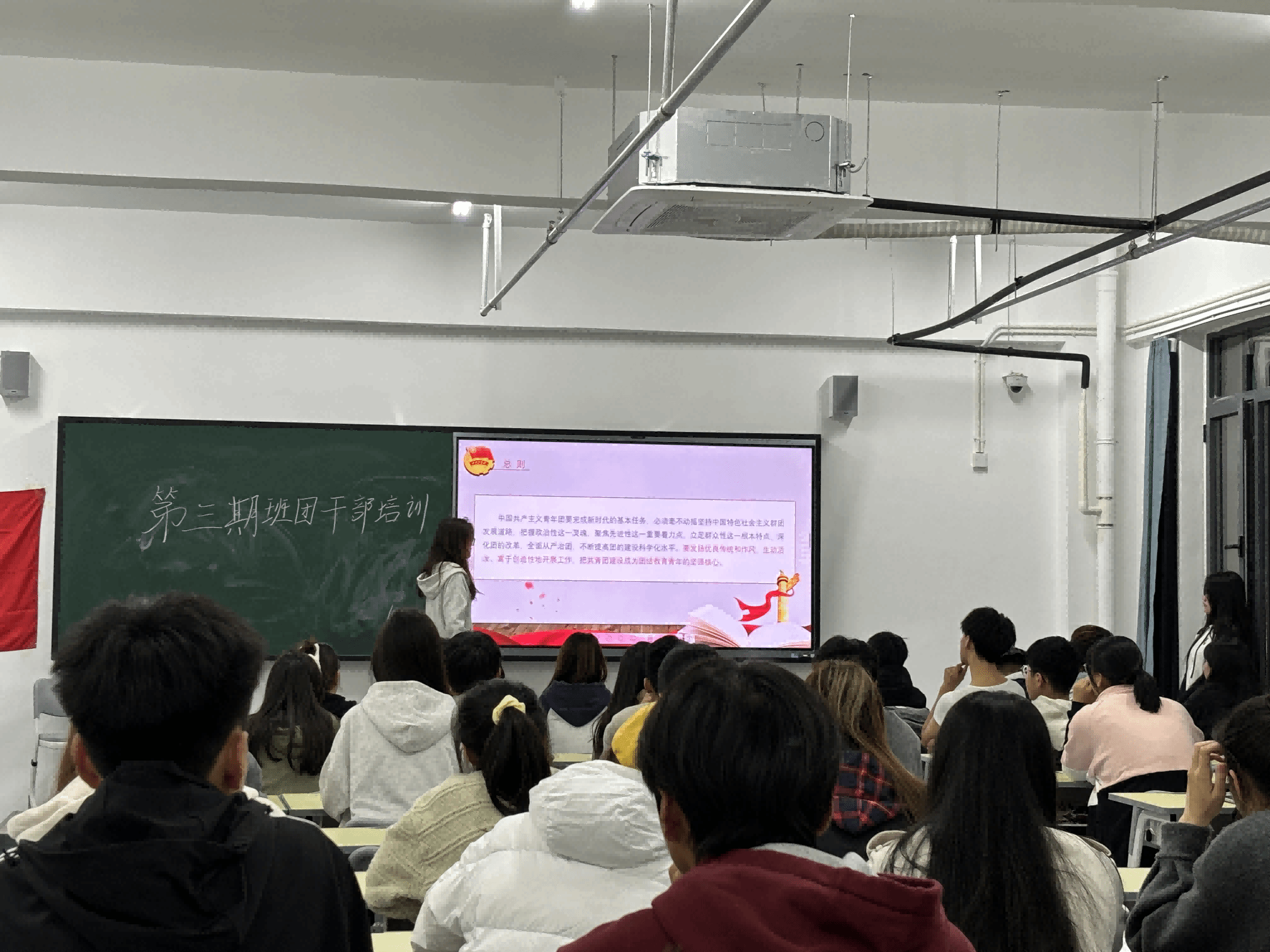 培训包含了团的组织制度、团的基层组织、团的干部、团的纪律等内容涵盖团章的各个方面。课堂上的班团干部们聚精会神,热情高涨,积极发言,课堂气氛活跃。
