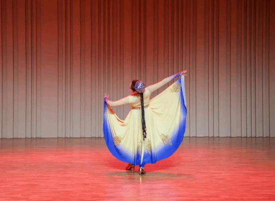 翟伟娜的舞蹈表演《晁煜》,体现了浓厚的草原游牧生活气息,动作粗犷,曲调热情淳朴,别具一格,展现了维吾尔族人民的英勇善战的性格和豪情。