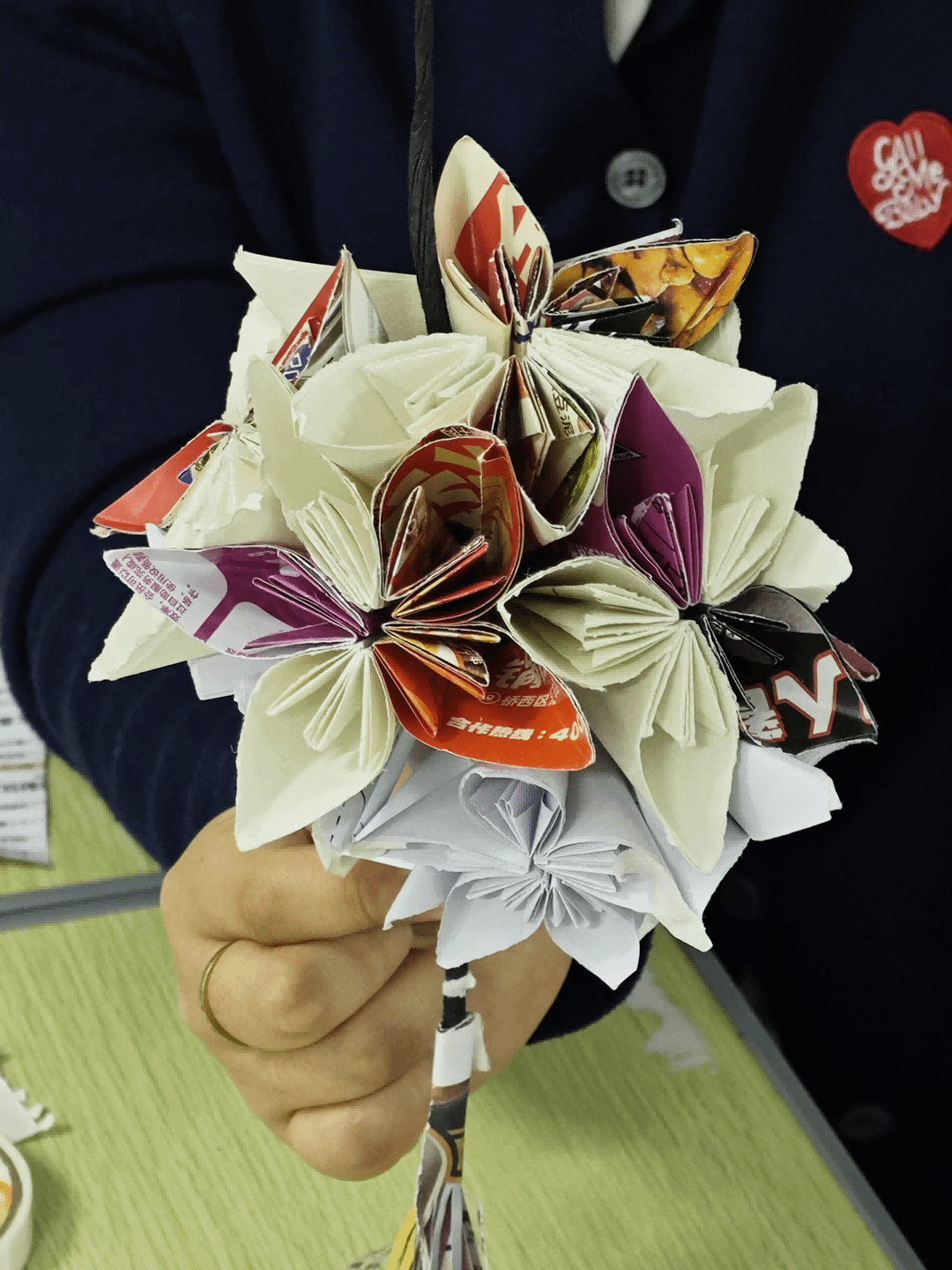 此次活动通过绣球花的制作,让同学们在实践中感受传统文化的魅力,在增强校园文化凝聚力的同时,展现出同学们的创新精神与实践能力。在简要介绍绣球花的文化背景与制作工艺后,同学们一步步将材料裁剪、折叠、拼接,最终制作出一个个精美的绣球花并进行了展示与评选,由现场观众投票选出最佳作品。这一环节不仅激发了大家的创作热情,还增强了团队协作与竞争意识。