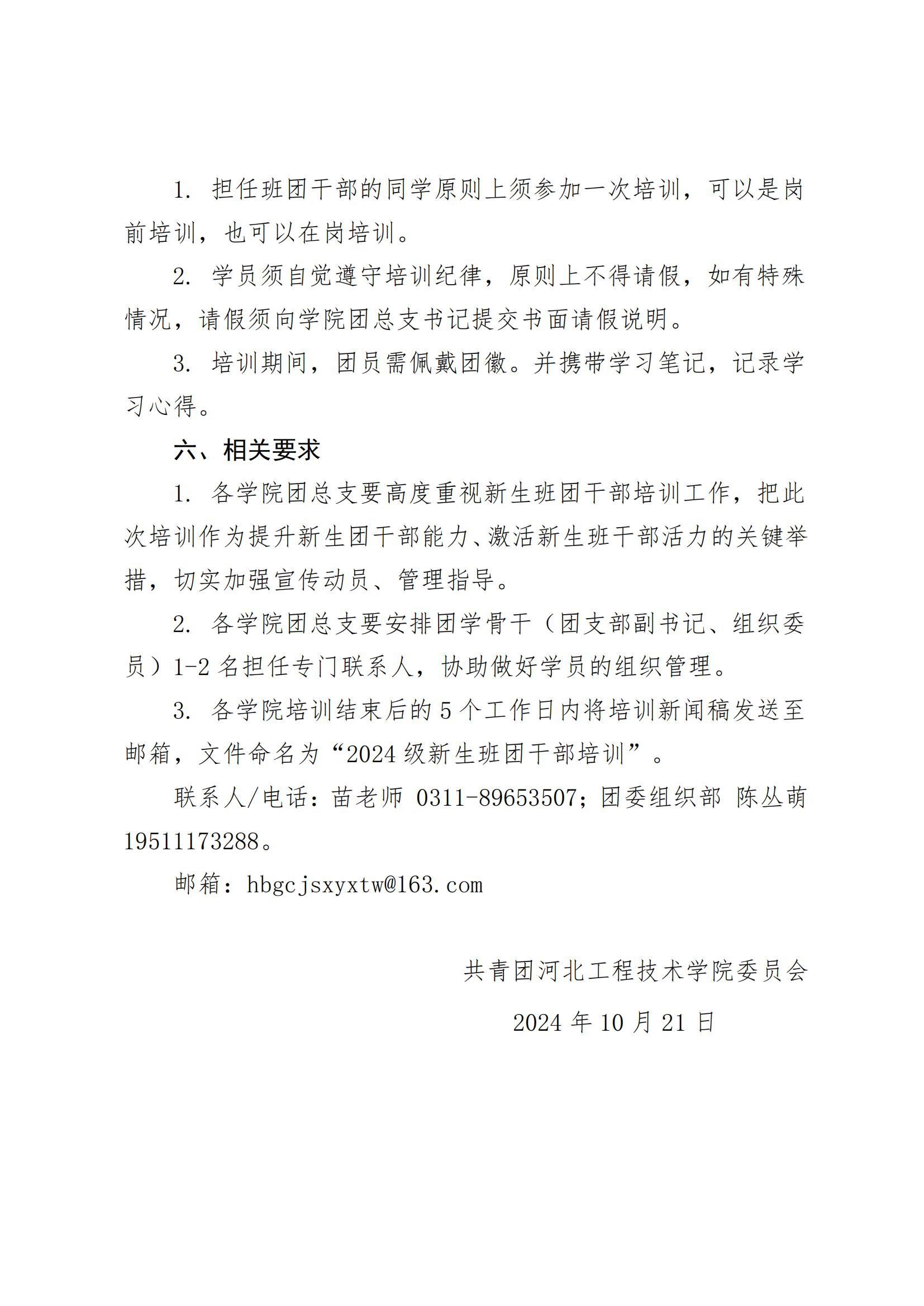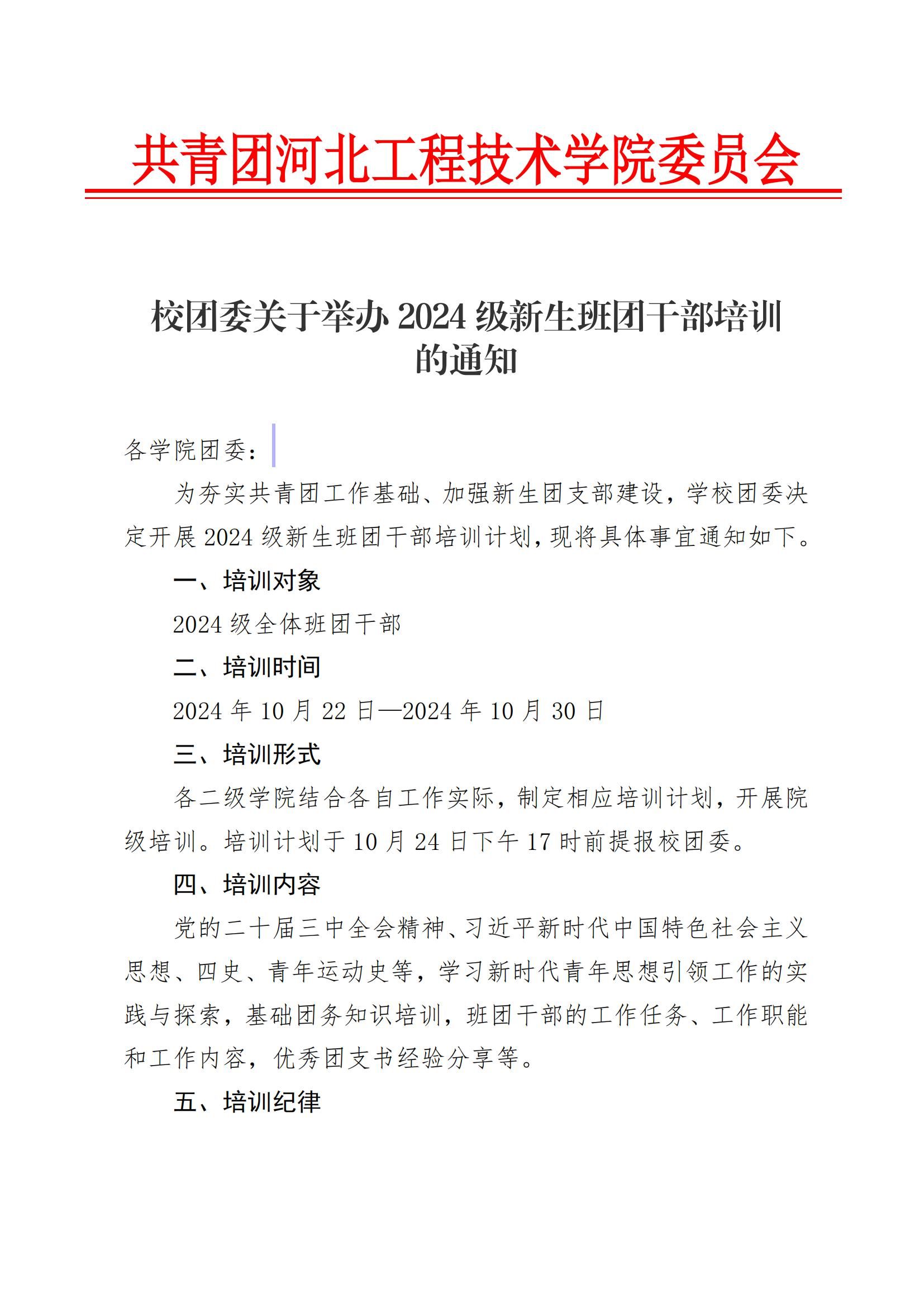 (转)校团委关于举办 2024 级新生班团干部培训 的通知