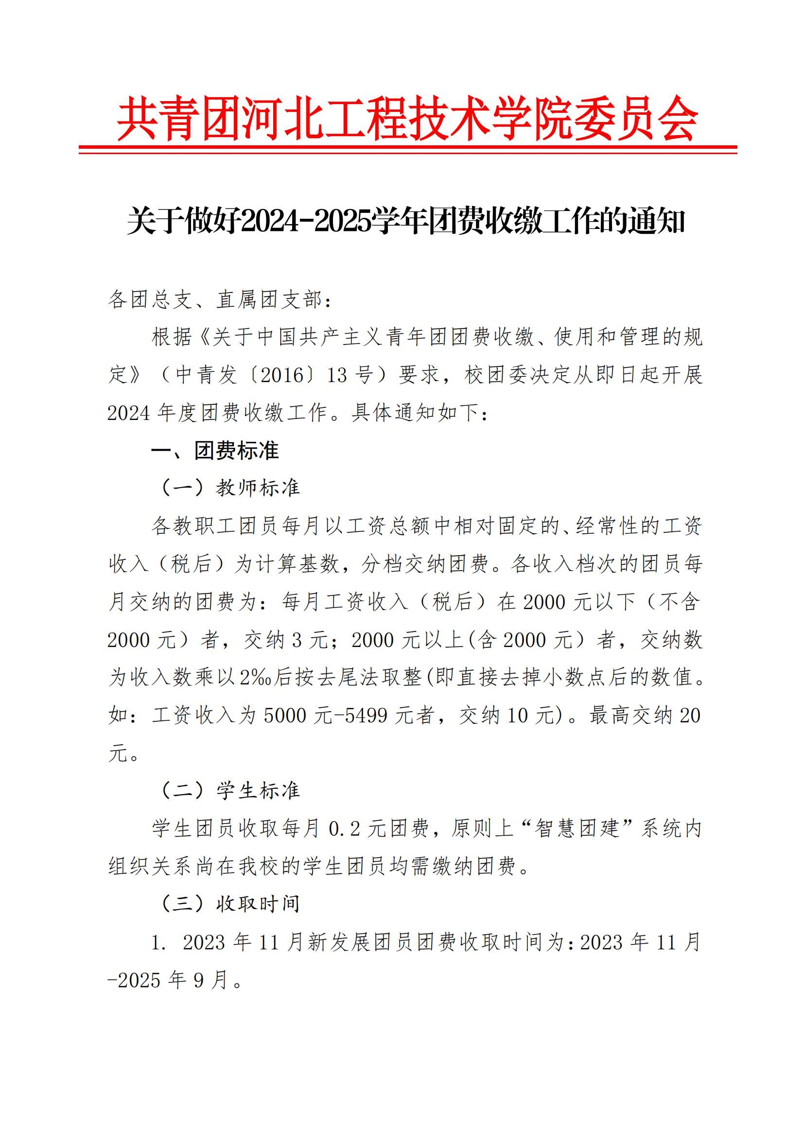 (转)关于做好2024-2025学年团费收缴工作的通知