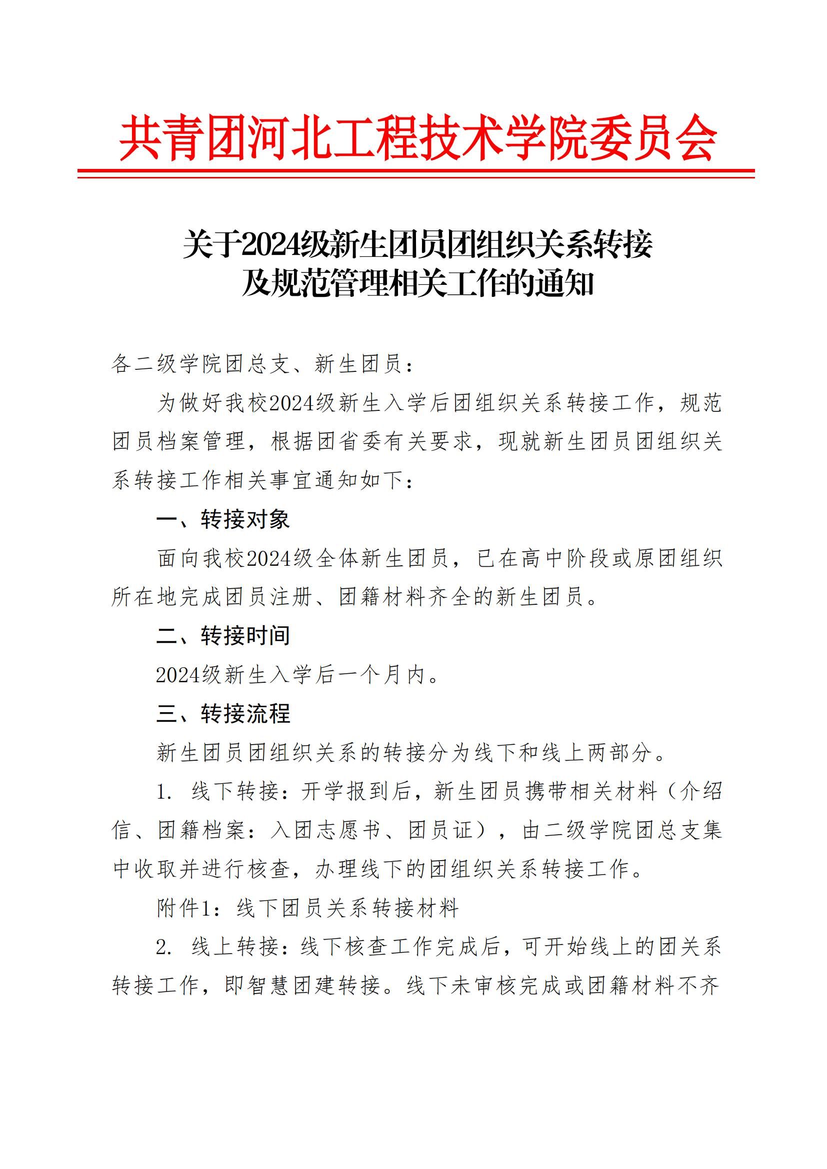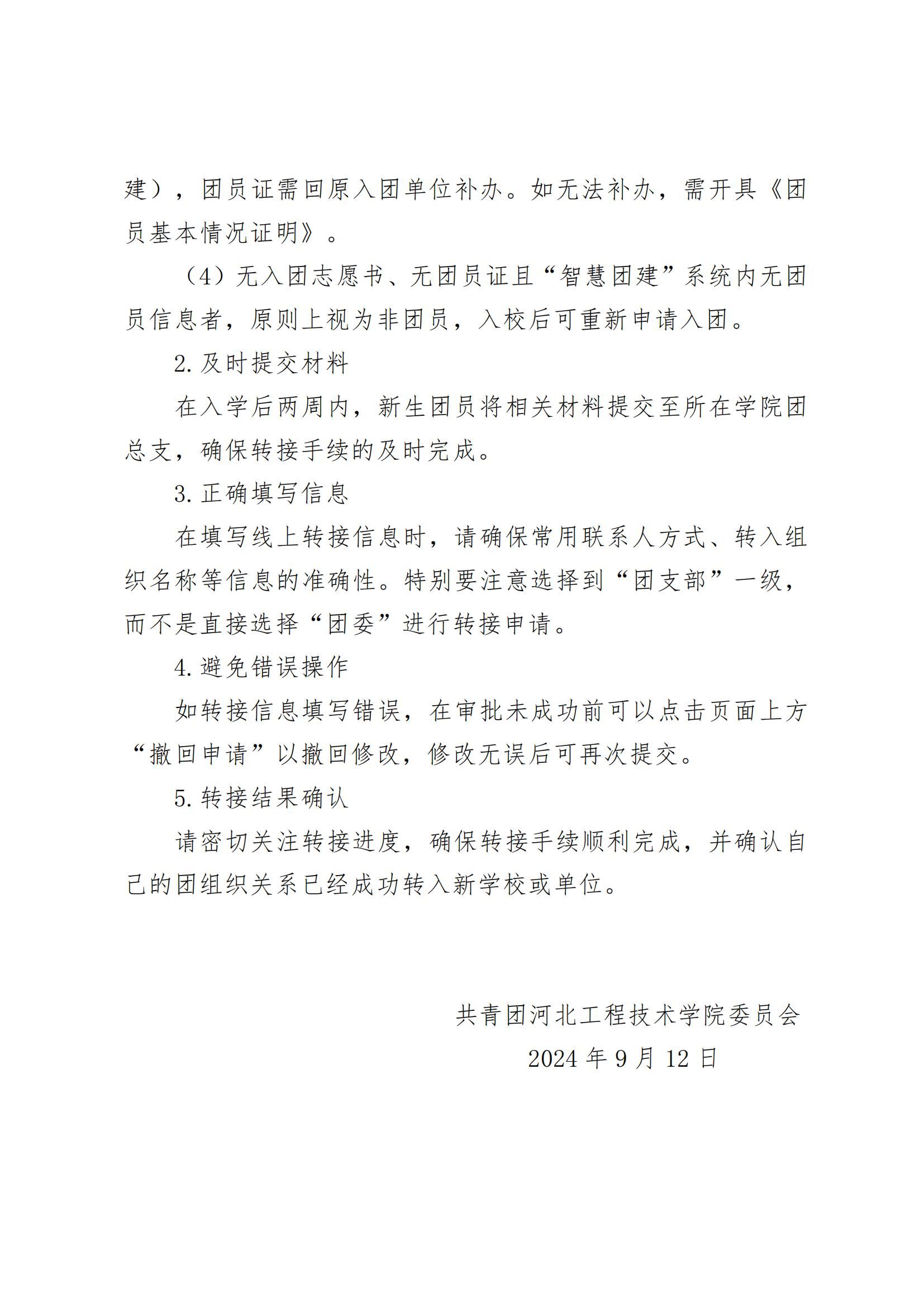 (转)关于2024级新生团员团组织关系转接 及规范管理相关工作的通知
