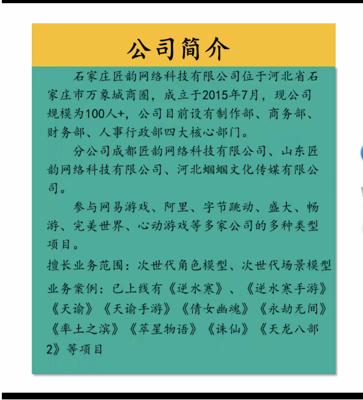 2023年2月16日下午15:00,石家庄匠韵网络科技有限公司招聘宣讲会在腾讯会议召开,会议由匠韵人事部经理杨智芝主持,主要为毕业班员工介绍了公司的经营项目、擅长业务范围以及福利待遇问题。