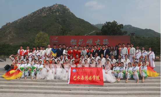 舞蹈表演专业员工在青年教师宋昭蓉的指导下表演歌伴舞《石榴缘》,表达了当今中国56个民族手足相亲、守望相助,恰如石榴籽紧紧拥抱在一起。