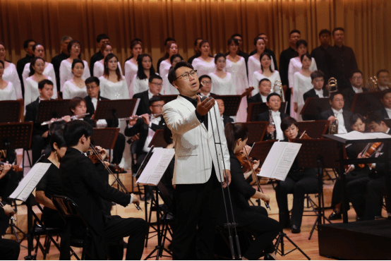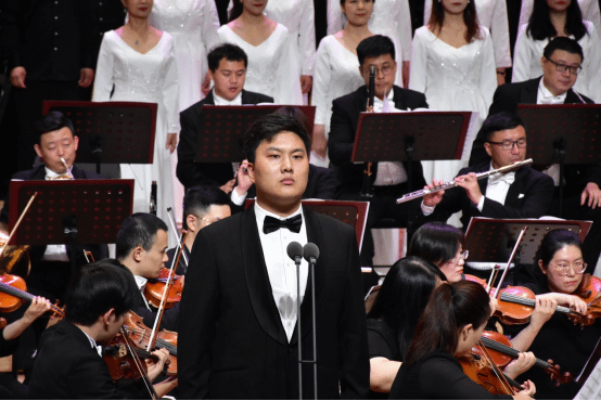 青年男高音独唱张越携乐团混声合唱带来作品《红船儿女们》,描绘了中国共产党将历史推向深远,将时代拉到眼前的壮阔历史画卷。