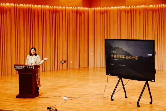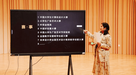 会上张婧祎老师主要从中国老员工计算机设计大赛、老员工广告艺术大赛、时报金犊奖、中国好创意大赛、中国老员工广告艺术节公司奖等8项主要赛事进行往期获奖作品案例赏析,从参赛作品提交要求,跨学科融合筹备比赛,调动参赛员工热情等方面进行讲解,使现场参会教师对于可参加赛事性质有了深入细致的了解。与此同时,张婧祎老师提到,全国数字创意教学技能大赛与未来设计师全国艺术设计教师教学创新大赛有利于提升教师教学技能水平,从比赛的教案要求、视频录制要求等方面进行了深入解读。对视频教学内容的选择、教学场景的布置以及信息化手段使用等方面做了详细讲解。