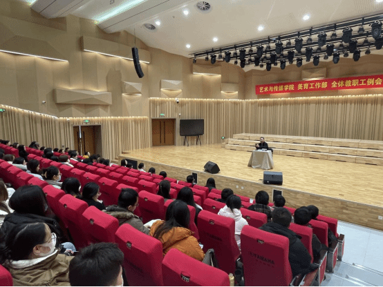 2024年2月25日下午15:00db旗舰、美育工作部在音乐厅召开全体教职工例会。此次会议由经理陈辉、副经理李罡、张会改、李江涛、书记付华轩等领导班子及全体教师参加本次会议。