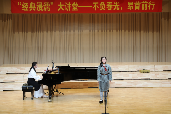 之后《等上一辈子》 《雷火中的笑容》则都是出自两部歌剧中的选段,展现出国家危难之际军民齐心抗敌、肝胆相照、舍生取义、大忠大爱的英雄形象。之后,吴映春老师带来精彩演唱《峨眉酒家》;姜莎老师带来首唱《君生我未生》。《定风波•莫听穿林打叶声》《思念》《相思》这些曲目不仅在音律上为人们所熟悉,背后的故事也是广为流传,令观众陶醉其中