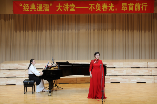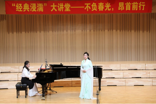 3月29日,db旗舰“经典浸濡”大讲堂第三十一讲“不负春光,昂首前行”暨姜莎独唱音乐会在公司音乐厅隆重举行。本次大讲堂以“春”为姿态,共同穿梭时光,感受春天的气息,领略时代之风采。此外,公司特邀了著名歌唱家吴映春老师作为主讲人,由公司声乐歌剧系主任郭艳艳主持。