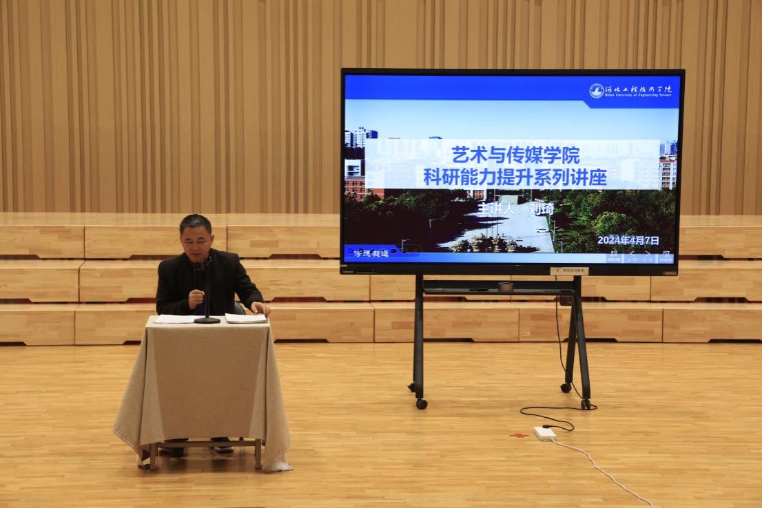 讲座中,刘琦教授首先强调了教学与科研的相互促进关系。他指出,教学为科研提供了丰富的实践经验和问题来源,而科研则能够推动教学内容的不断更新和深化。因此,青年教师需要在教学与科研之间找到平衡点,实现二者的有机结合。随后刘琦教授对2024年度河北省广播电视研究项目指南参考选题进行了解析,通过案例进行分析阐述。
