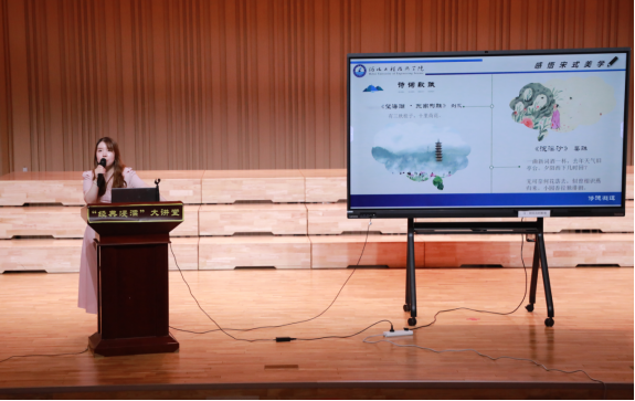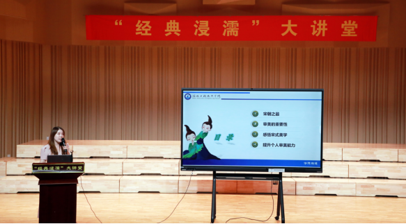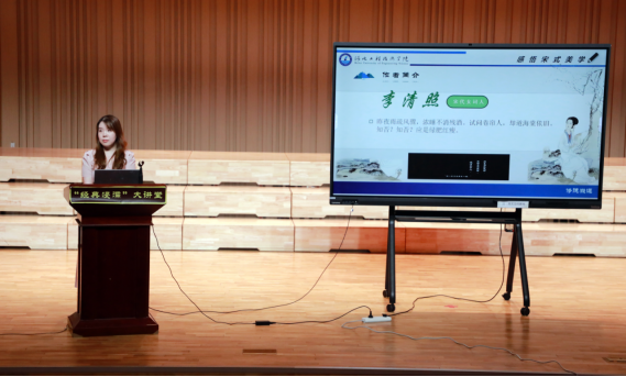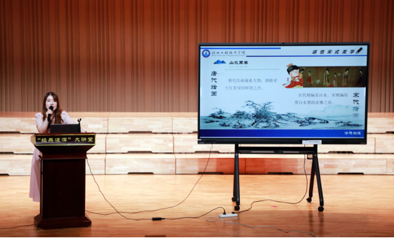 5 月16日,db旗舰在音乐厅举办了“经典浸濡”大讲堂第三十六讲——“千年宋韵,极简美学”。本期大讲堂,艺术设计学系教师赵蕊以宋式美学精神为主题,用丰富的史料和精彩的故事,与广大听众共同分享探讨宋韵文化内涵,深度赏析宋式美学,提升师生们的个人审美能力。