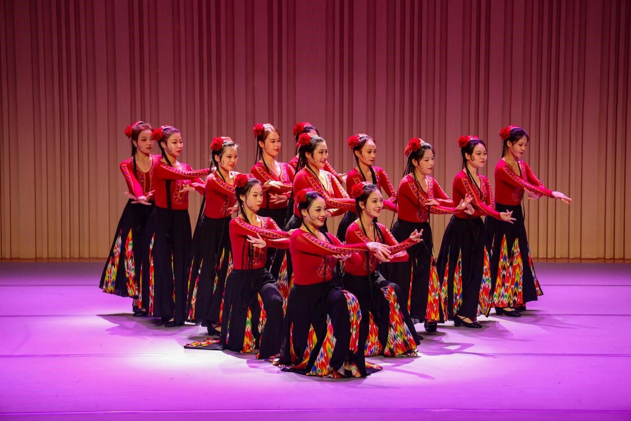 风格之美,民族风情的斑斓画卷。舞台上,维族顶碗舞的神秘、傣族风格性组合的柔美、蒙古族课堂风格性表演的豪迈,如同一幅幅绚丽多彩的民族风情画卷,缓缓展开在我们眼前。这些舞蹈,不仅展现了各民族独特的地域特色和人文风貌,更让我们深刻感受到了中华民族多元文化的博大精深与和谐共生。
