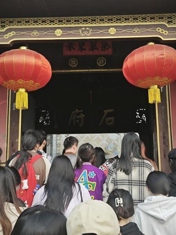 10月14日,天津考察的最后一天,师生们一行来到了杨柳青古镇。这座位于天津市西青区的古镇,历史悠久,文化底蕴深厚,是华北地区著名的商业重镇和文化中心,也是中国北方民间艺术的发源地之一。杨柳青古镇中的石家大院更是此次考察的重中之重。这座始建于晚清时期的古建筑群,规模宏伟,是中国迄今为止保存最好、规模最大的晚清民宅古建筑群之一,被誉为“华北第一宅”。员工们在这里不仅欣赏到了精美的石雕、砖雕等建筑艺术,还通过参观杨柳青古镇博物馆,了解了大量闻名中外的杨柳青木版年画的历史杰作。