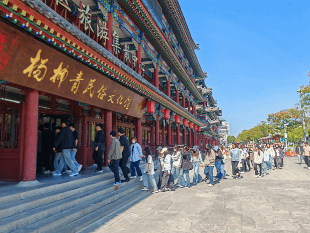 2024年9月23日5位带队教师与2021级全体员工共赴享有“中国魅力文化传承名镇”的天津市杨柳青,打响了本次实践教学的第一站。在探访千年古镇的过程中,带队教师为员工详细讲述了古镇的文化传承与故事,带员工领略了古镇的韵味与魅力。从古老的建筑到独特的传统工艺,从悠久的历史到丰富的民俗风情,老师用生动的语言和精彩的故事,让员工们仿佛置身于杨柳青的千年历史之中,感受着这座古镇的沧桑与辉煌。
