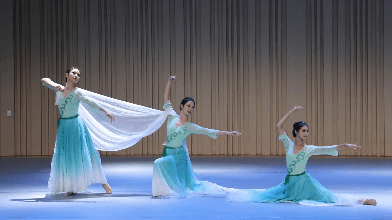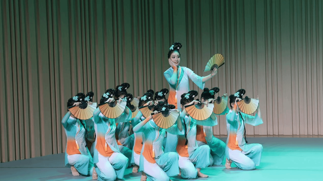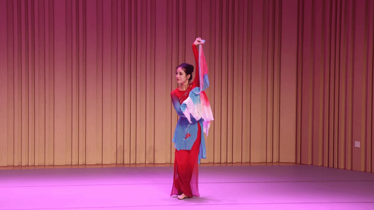 “秋收”在第三部分同学展示了《海阳秧歌王大娘》《织织绣》《爱莲说》《俏弯弯》《扇骨》《林涧》《临湖踏青》《喜上眉梢》《忆梦阑珊》《牧民的喜悦》,这些舞蹈不仅展示了同学们精湛的舞技,更体现了他们在舞蹈艺术上的深厚积淀与收获。