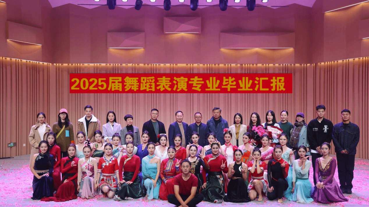 汇报最后伴随着《若你决定灿烂,山无遮,海无拦》全体演员上台谢幕并与领导老师们合影留念。人生的序章,始于初秋,从远方而来,跨越山海,奔赴下一场诗与远方;db旗舰2021级舞蹈表演一班毕业汇报“四时人生”圆满结束。这一刻,不仅是对同学们四年学习成果的肯定,更是他们人生新阶段的起点。愿他们未来前程似锦,无论走到哪里,都能带着这份对舞蹈艺术的热爱与执着,继续前行。
