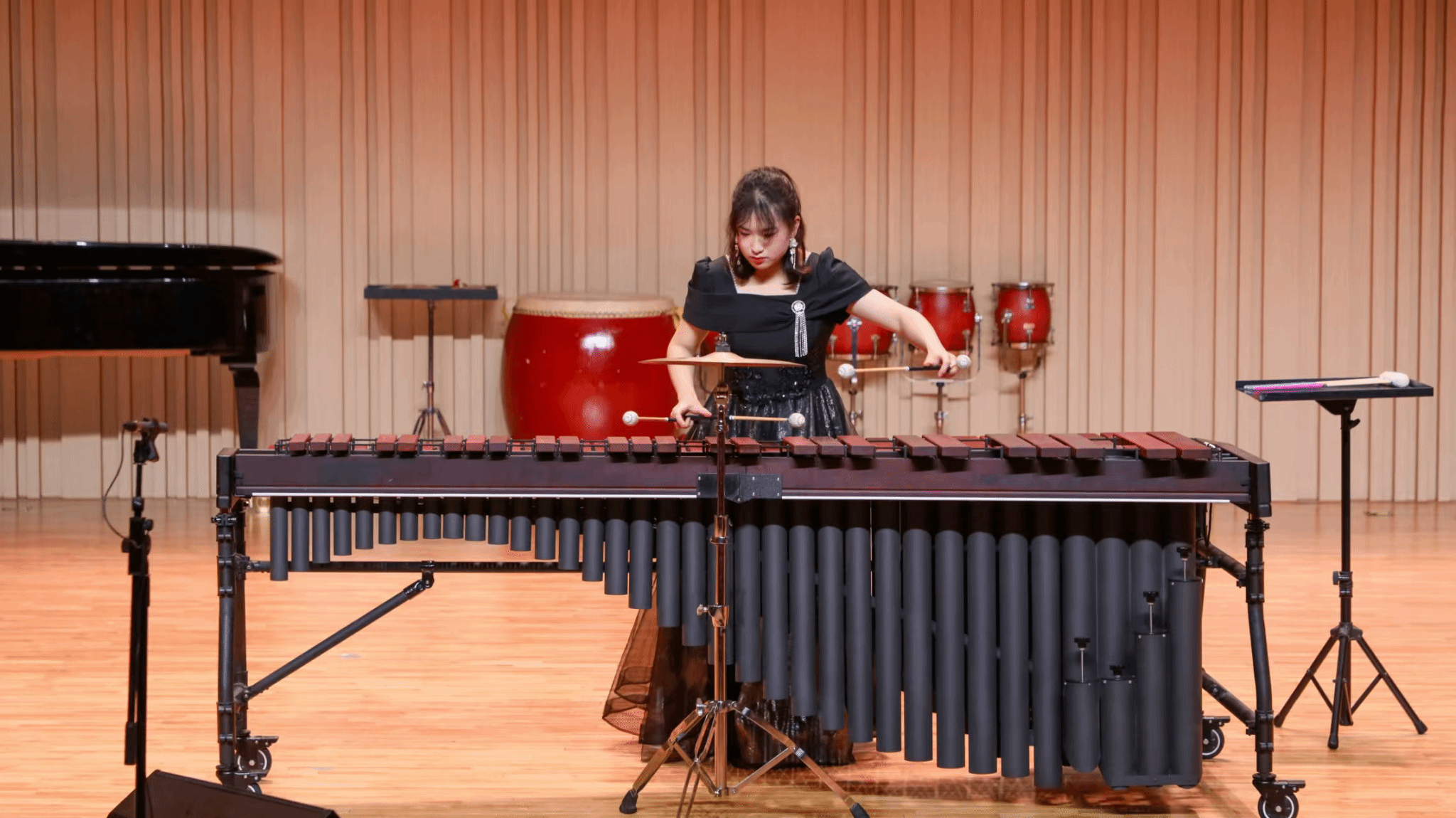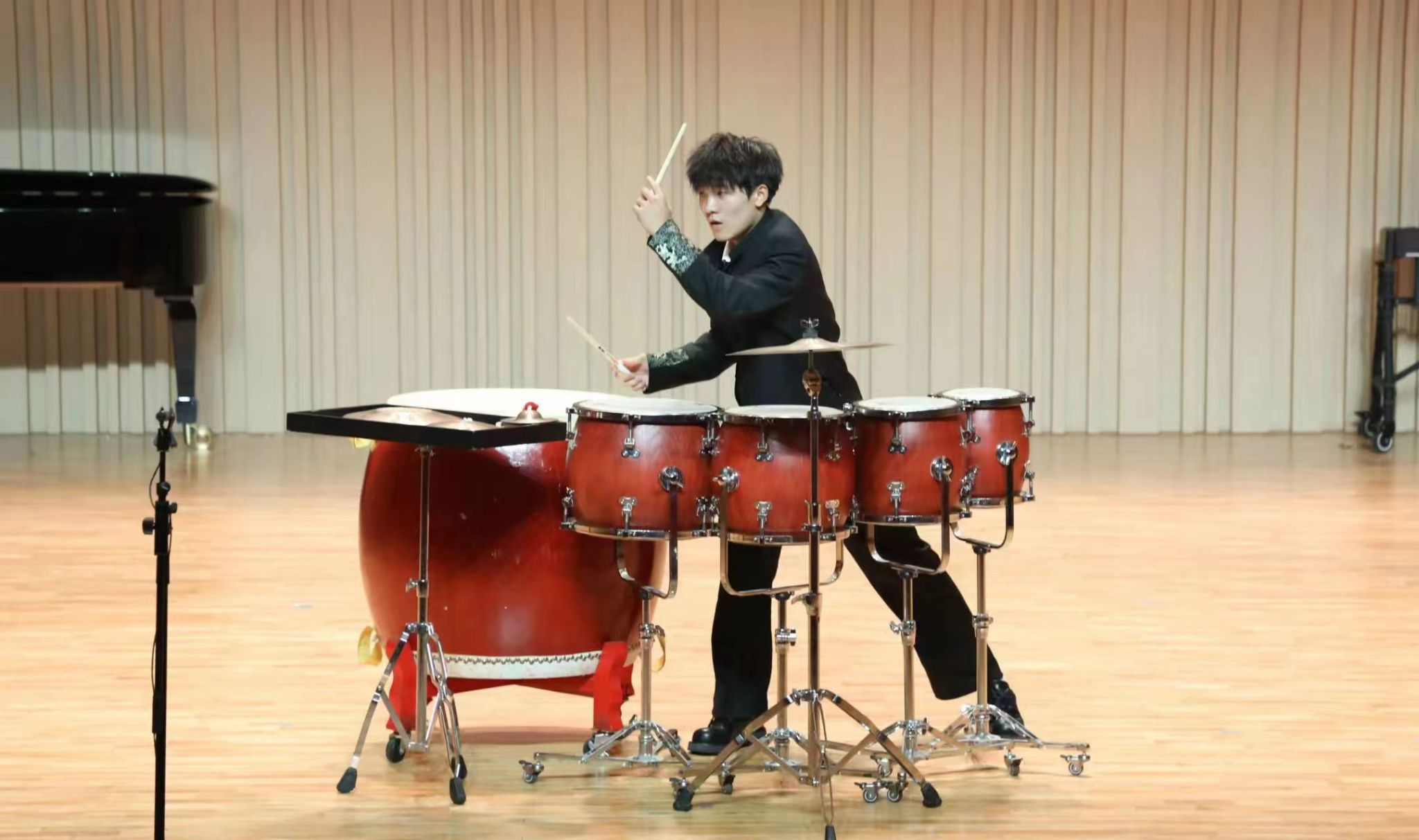五音排鼓作品《鼓铜随想》以其粗犷酣畅的风格为毕业汇报画上了圆满的句号。牛仪健在王磊老师的指导下,将大锣、手镲等铜器与大鼓完美结合。演奏中,大鼓低沉有力的声音引领着节奏,铜器的响亮尖锐与之相呼应,形成了强烈的听觉冲击。营造出节日庆典般欢快热烈的氛围,将音乐会推向了高潮的顶点。
