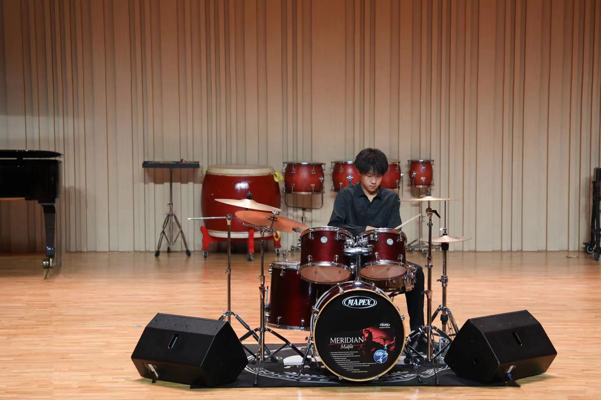 爵士鼓独奏《Wild Boy》率先点燃了现场的氛围。在指导教师王磊的悉心教导下,演奏者王胤泽以鼓槌为笔,勾勒出充满活力的节奏画卷。那激昂的韵律,如同青春的热血在沸腾,每一声鼓点都跃动着年轻的激情,令在场观众为之动容。