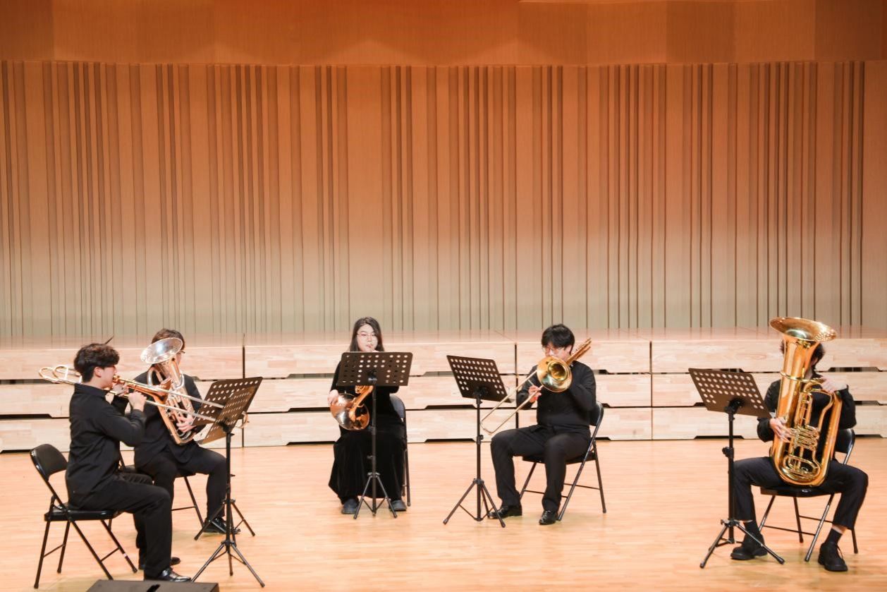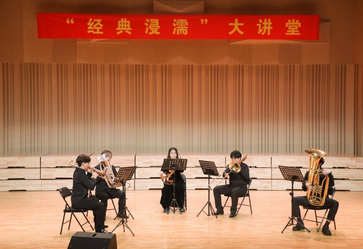 “和谐之美”篇章,杜枚杰、施润桓、王宇、高新杰、白若涵五位演奏家的铜管合奏《伴随着你》,以其音色的完美平衡与互补,展现了铜管乐器的和谐与立体之美,令人叹为观止。