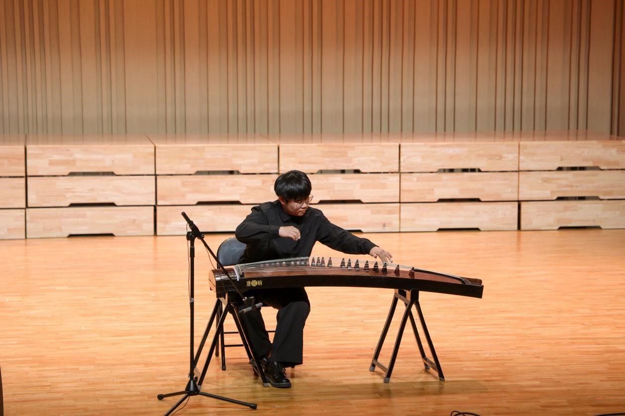 进入“形制之美”环节,黄老师以古筝为例,细致入微地剖析了古筝形制的历史演变、选材雕琢及装饰艺术,展现了其独特的美学魅力。紧接着,王子鑫的古筝独奏《行者》以其深邃的艺术表达,让古筝之美跃然耳畔,直击心灵。