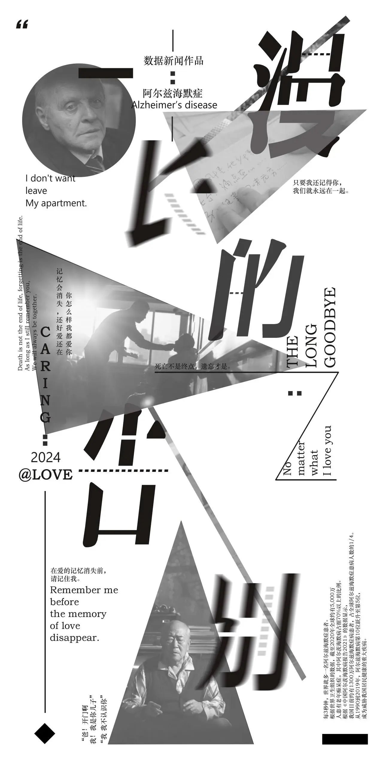 数据新闻《漫长的告别》深入剖析了阿尔茨海默症的现状与影响,借助数据新闻的力量,期望能够逐步引导读者深入了解阿尔茨海默症,并激发其对该病症的关注和思考,同时也为那些正在经历困境的患者和家属带来一些慰藉和希望。