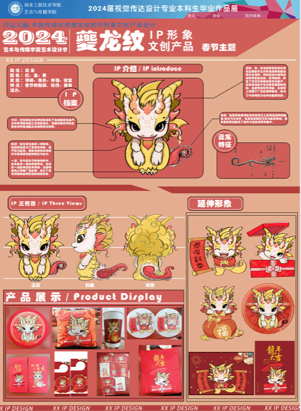 本次设计是在深入研究中国文化中龙的象征意义,包括权威、力量、尊贵和吉祥。探索龙图腾在不同历史时期的变化,提炼设计元素,确定目标用户进行创新设计。