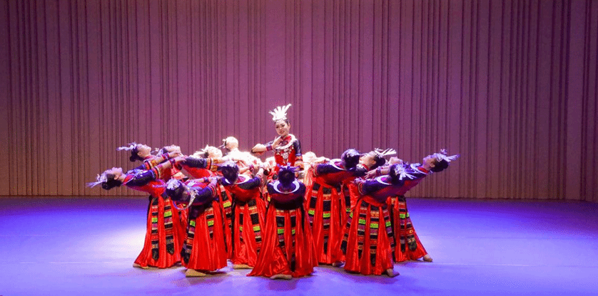 “云岭风情”带来了傣族舞蹈《邵多丽》和苗族群舞《一抹红》。傣族舞蹈以三道弯为标志性动作,展现出孔雀的优雅与美丽;而苗族舞蹈则以腰部为轴,脚步轻盈,展现出独特的民族风情。