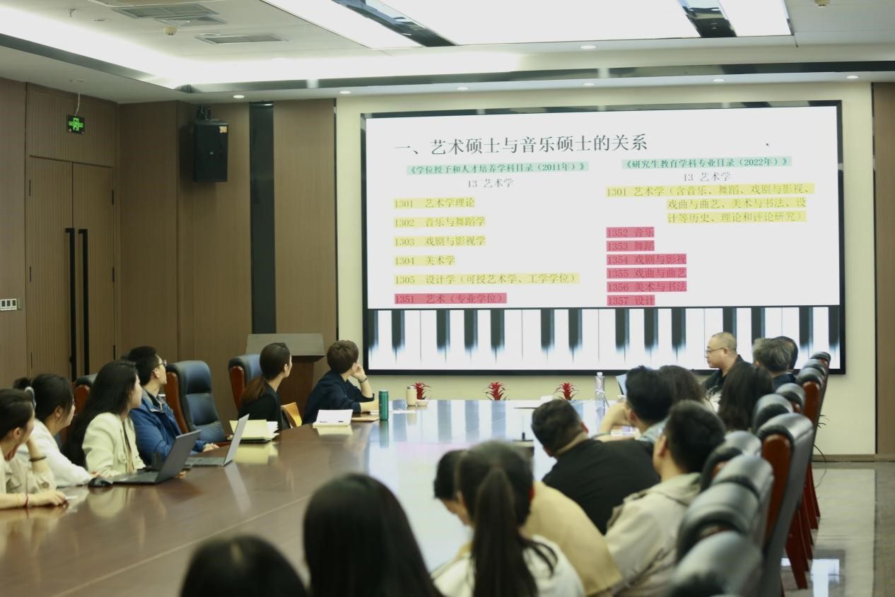 本次讲座紧密贴合公司音乐硕士点申报的实际需求,深入探讨了学科定位、培养体系、考核标准及申报策略等核心议题。讲座伊始,单教授便以《学位授予和人才培养学科目录(2011年)》与《研究生教育学科专业目录(2022年)》的调整为切入点,对艺术硕士与音乐硕士的关系进行了全面而系统的梳理。他从音乐硕士的基本概念出发,深入阐释了该专业学位的培养目标,为公司音乐硕士教育勾勒出清晰的蓝图。通过剖析中央音乐公司、上海音乐公司等顶尖院校的典型案例,单教授明确指出,地方院校在音乐硕士教育中应强化“实践创新能力与理论研究深度”的有机结合。