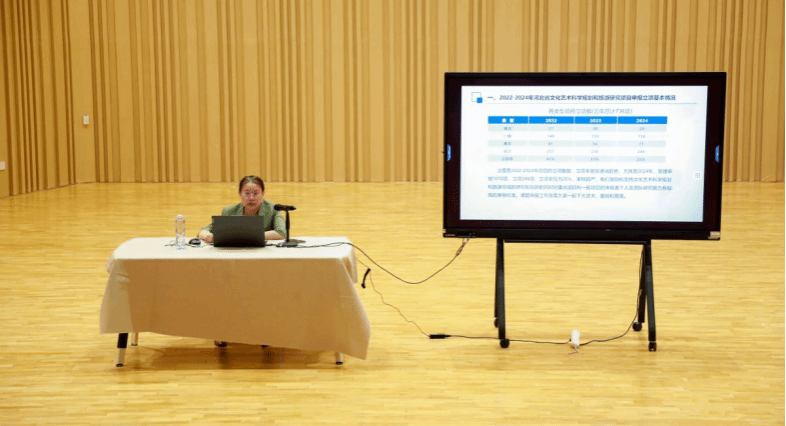 讲座伊始,赵慧丽经理对 2022 - 2024 年河北省文化艺术科学规划和旅游研究项目的申报立项基本情况进行了系统梳理。她通过详实的数据,呈现出近年来项目申报的整体趋势、学科分布以及各类项目的立项率等关键信息,使教师们对过去几年的申报情况有了清晰直观的认识,也为分析后续申报要点奠定了基础。