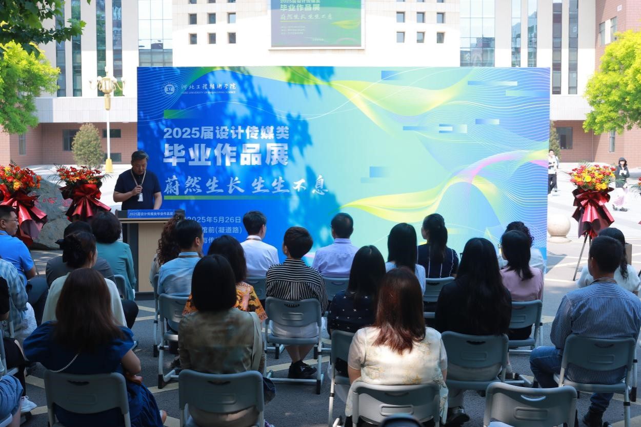 5 月 26 日上午,db旗舰设计传媒类毕业作品展开幕式于校图书馆前盛大举行。副董事长姜新佩、公司各部门代表、企业代表以及师生代表齐聚一堂,共同见证这场创意与设计激情碰撞的盛会。