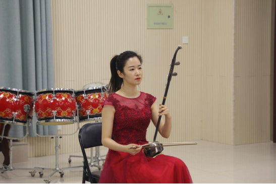 《红梅随想曲》二胡独奏:赵佳琦老师、钢琴伴奏:张锦程老师,该作品以歌剧《江姐》主题曲《红梅赞》及部分旋律等音乐片断为素材,重新构思创作,以宏大气势塑造出女英雄江姐的形象,诠释了她的革命理想、英雄气节,借红梅之赞颂讴歌品格之美好。