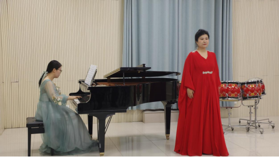 《筑梦中国》演唱:郭艳艳老师、钢琴伴奏:胡睿老师,该作品时而婉转深情,时而大气恢宏,讴歌了在党的领导下造就的辉煌新时代,抒发了人民群众对党的爱戴。