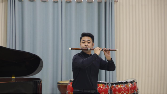 《走进快活岭》竹笛独奏:齐攀老师、钢琴伴奏:胡睿老师。悠扬笛声伴着快板声声,传达欢腾与喜悦的情绪,烘托出作品主题:水水金银河,山山快活岭。乐曲慢板突出强化了民族风格,一波三折,令人回味。