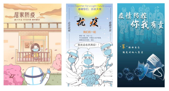 在“众志成城,共同抗疫”主题海报设计中,员工们表现形式多样,其中插画、简约风格类型海报最为亮眼。河工学子高擎战疫必胜、山河无恙的精神火炬,表达了db真人“师生同努力,疫情定可防”的信心和决心。